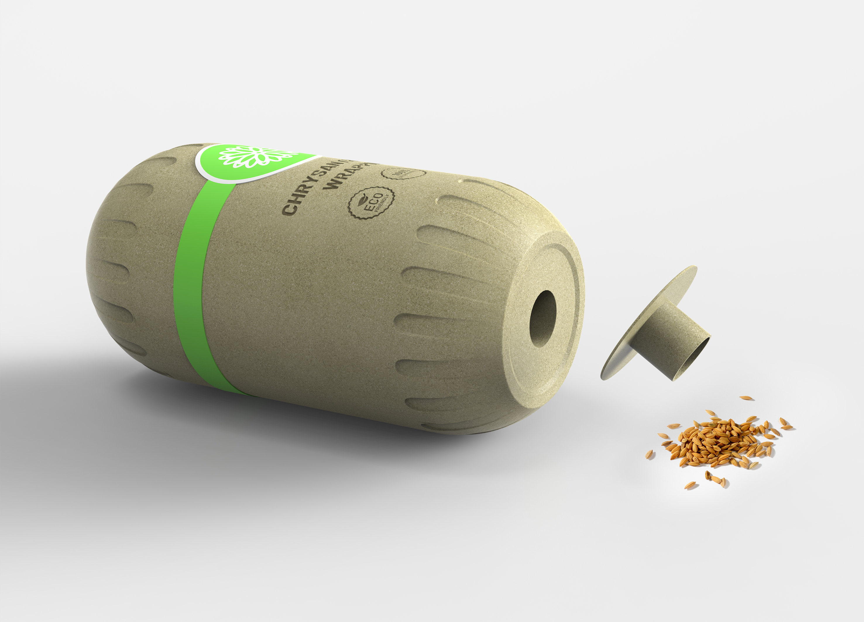 A health product packagingStraight tube structure with detachable bottom for seed sowing100% biodegradable and recyclable, processed and packaged with discarded chrysanthemum stemsAdopting chrysanthemum design elements from (plum, orchid, bamboo, and chrysanthemum)Non toxic and odorless