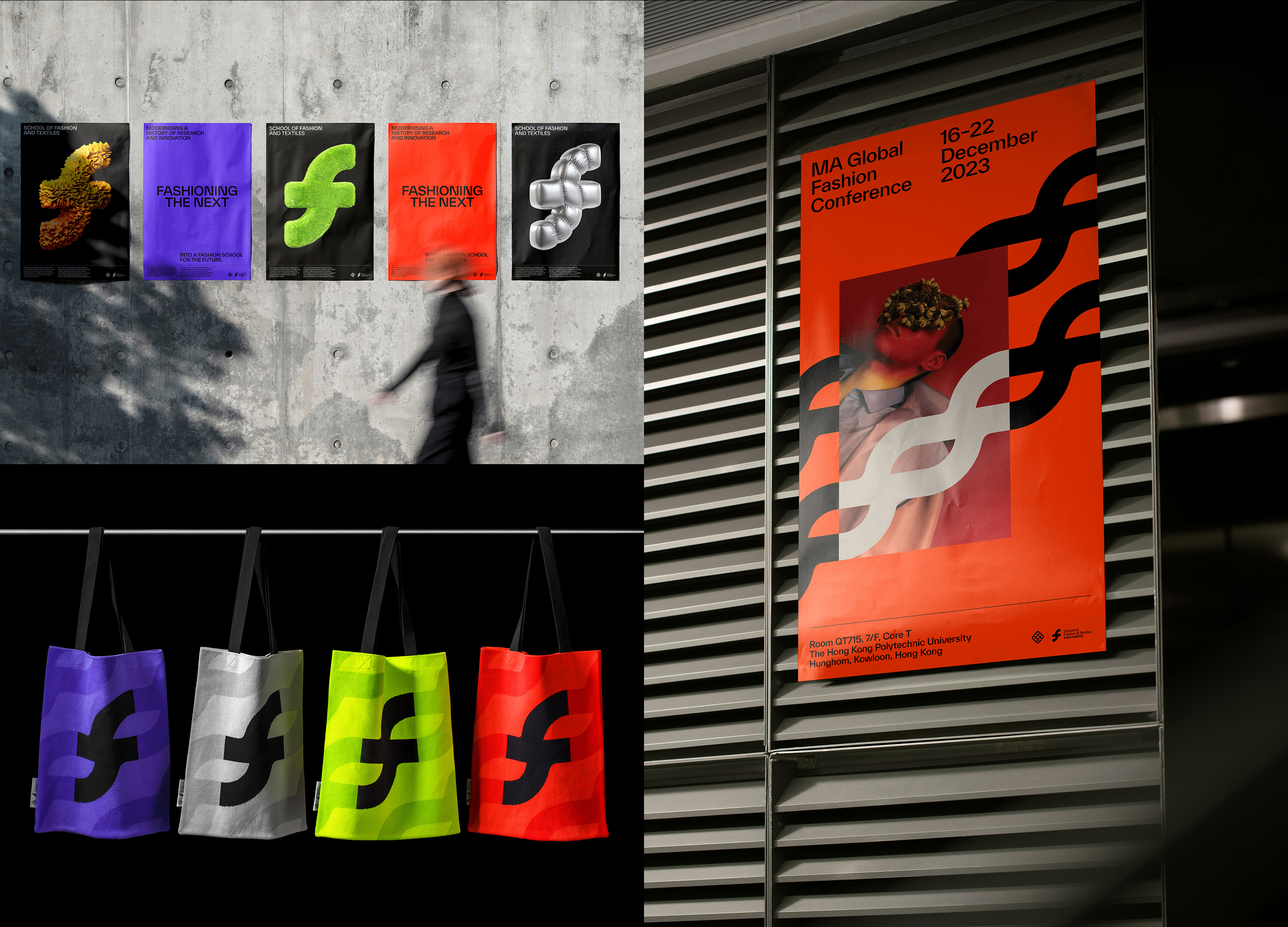 Looking to the craft of fashion and textiles for inspiration, the brand identity uses the concept of intertwined lines representing twisted strands to create a thread, communicating the idea of SFT’s interdisciplinary and collaborative nature. The structure formed by the strands create a thread that moves upwards—becoming a timeline from ITC to SFT and beyond, bringing fashion and textiles into the future. A cross-section of this thread becomes the symbol for SFT and the core element of which the brand identity is built on. The SFT symbol is devised into a mannequin like element, adorned with a myriad of different textiles and materials that reflect the diversity of fashion and the multiple disciplines, paths and possibilities that SFT has to offer.