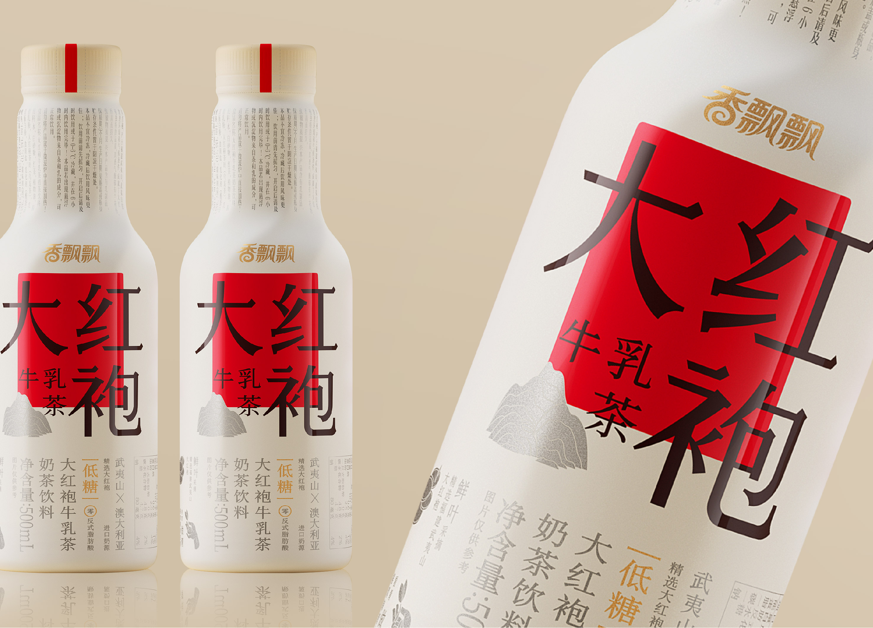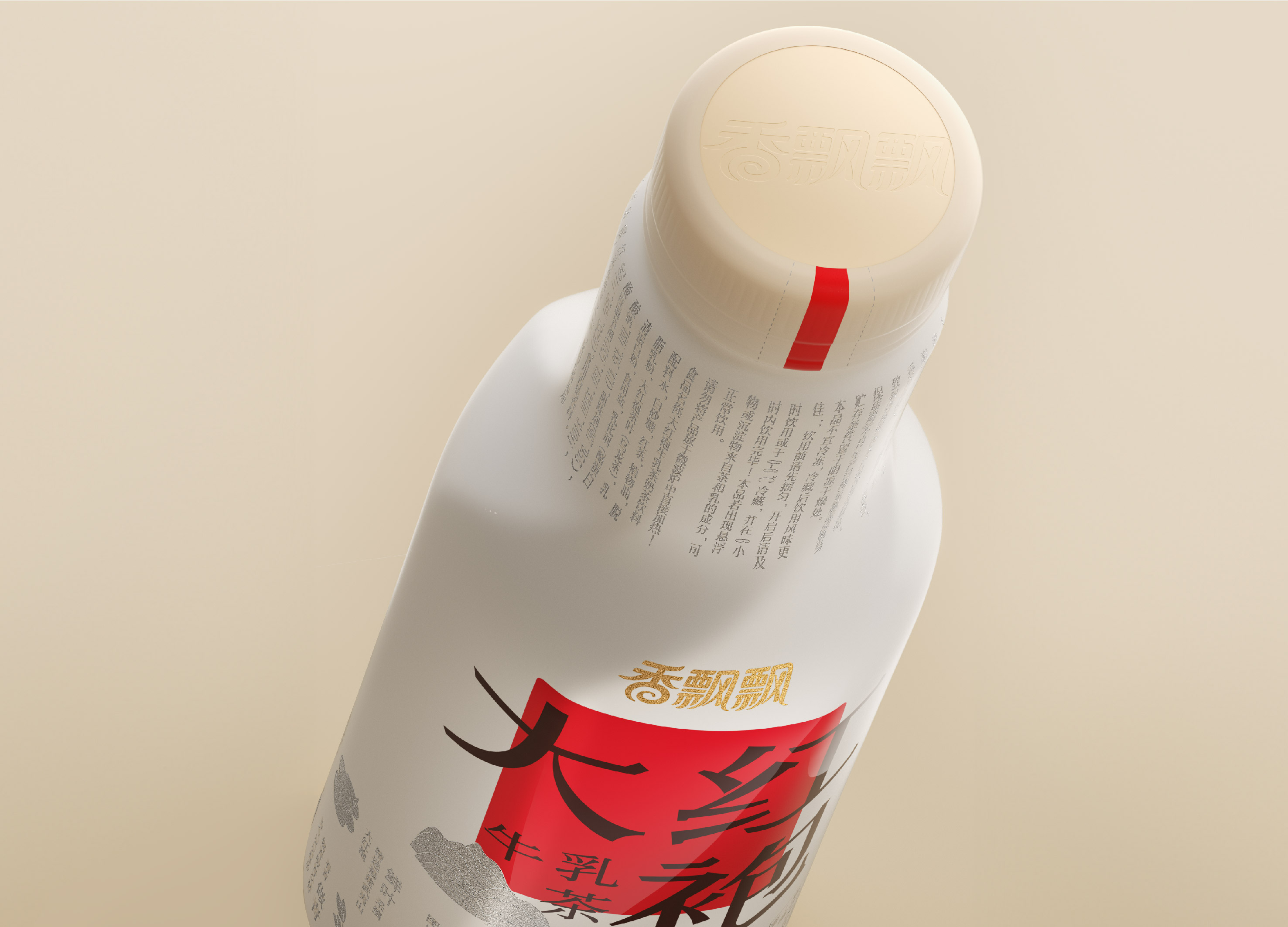 Traditional Eastern aesthetics collide with contemporary values, and the color of Chinese tea becomes the carrier of the packaging, achieving a modern Chinese design expression. Our consumers only see the visual result without hearing the process. Chinese characters are the most concise and powerful symbols of Chinese culture. By retaining the Chinese vertical layout, it recreates the beauty of the current atmosphere in the square inch, striking the hearts of the Chinese people.The packaging includes an easy-tear guide, providing a smoother experience for consumers.The product needs to balance mass appeal with innovative proportions, using the visual appeal of milk and tea to cleverly create reinforced ribs in the bottle design, making it a unique container symbol for Xiang Piao Piao. The packaging combines the beauty of Chinese character vertical typography with contemporary flat graphic language, dominated by China's most important color red. This modern Chinese design expression forms a succinct and powerful cultural symbol that resonates with young consumers.