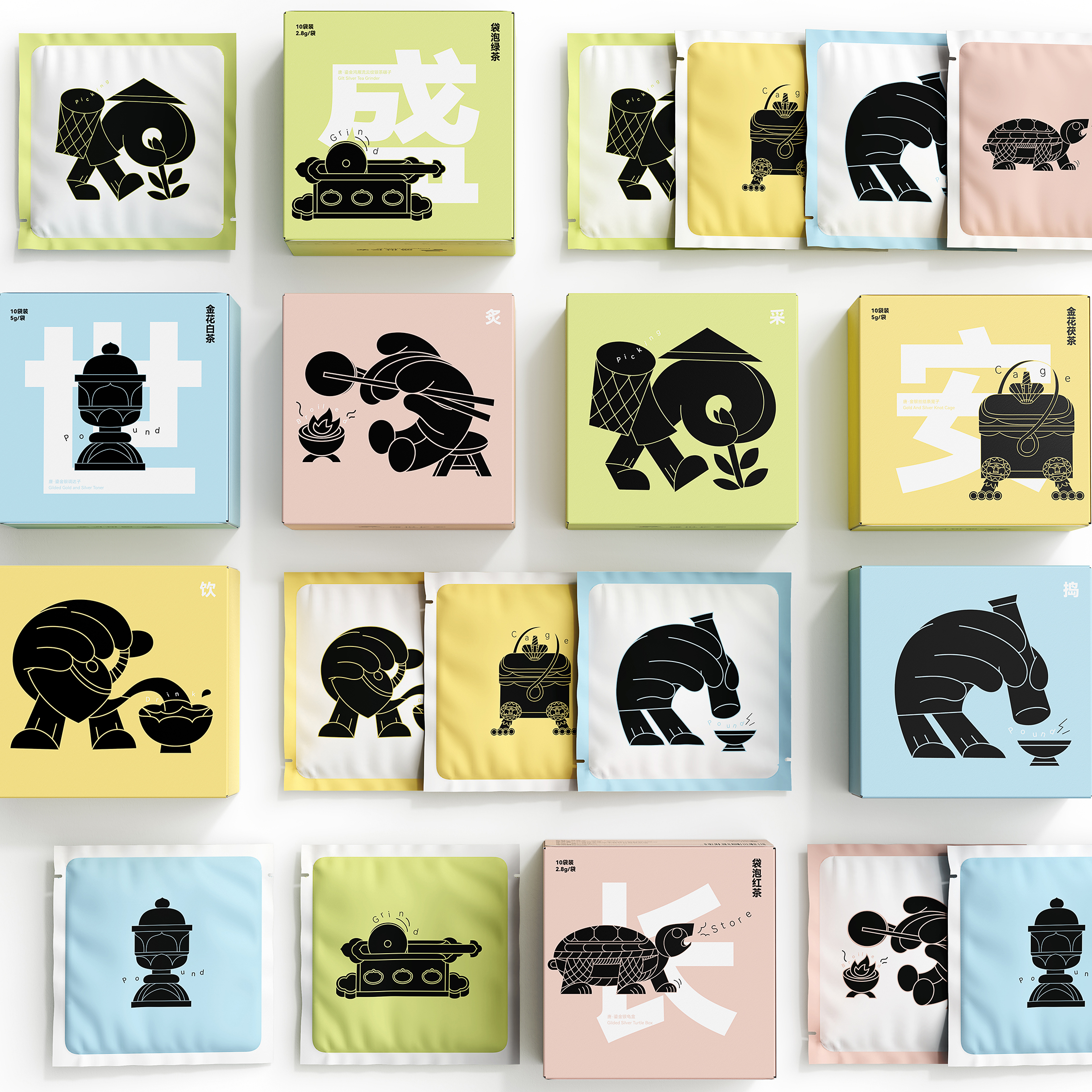 Prosperous Chang'an is a tea brand that sells and promotes Shaanxi tea culture. In the prosperous Tang Dynasty, bright tea culture was born. Taking the gold and silver tea sets unearthed in the underground palace of Famen Temple in Shaanxi Province as the starting point of creativity, through the Tang Dynasty, modern and fashionable graphics collide with tradition to promote the brand and its products.