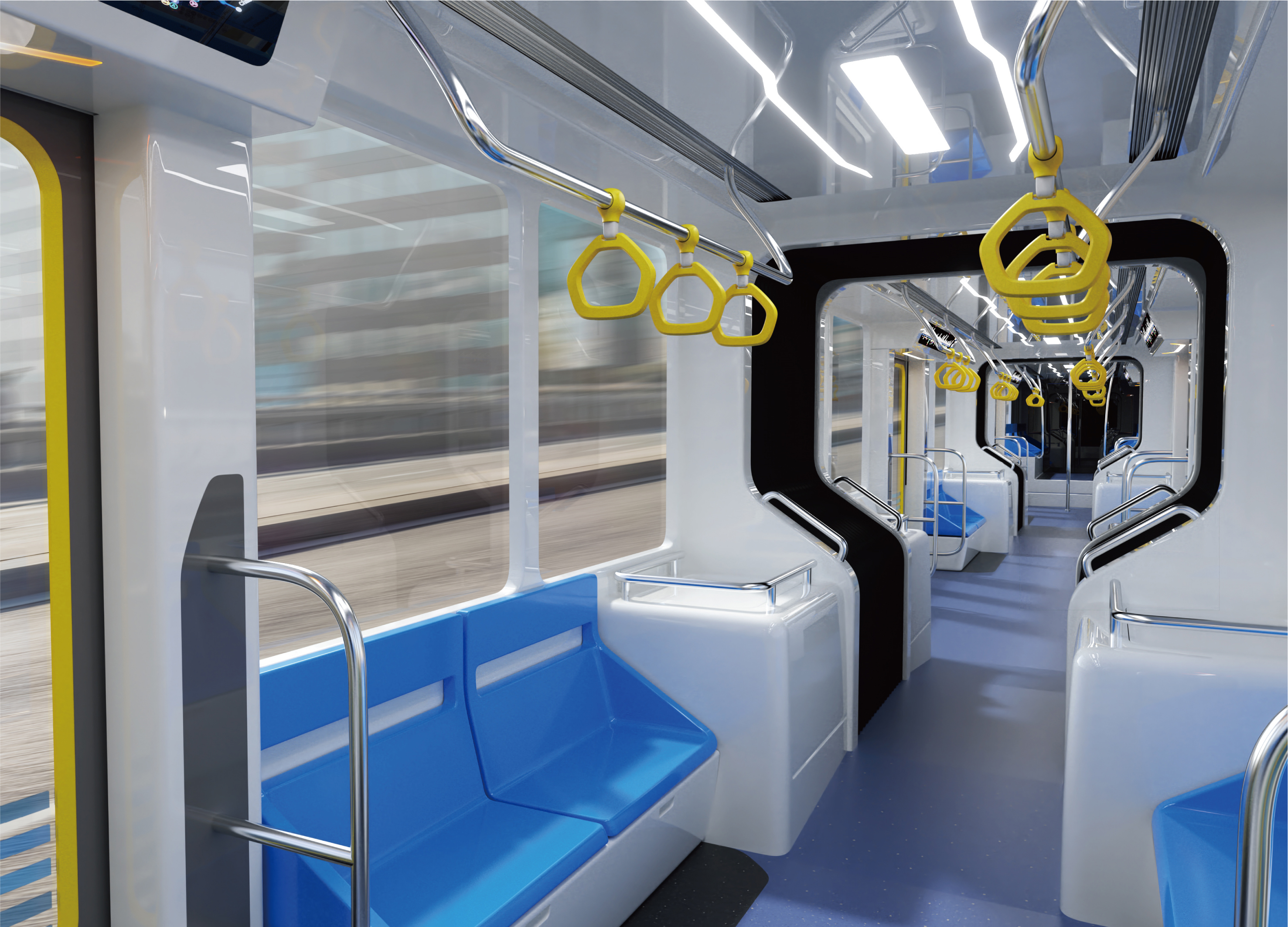 3. The main colors of the passenger compartment are blue and white, which injects new vitality and vigor into the bus, and the light shape of the middle roof panel also increases the technological design elements. Yellow parts are convenient for people with color amblyopia.