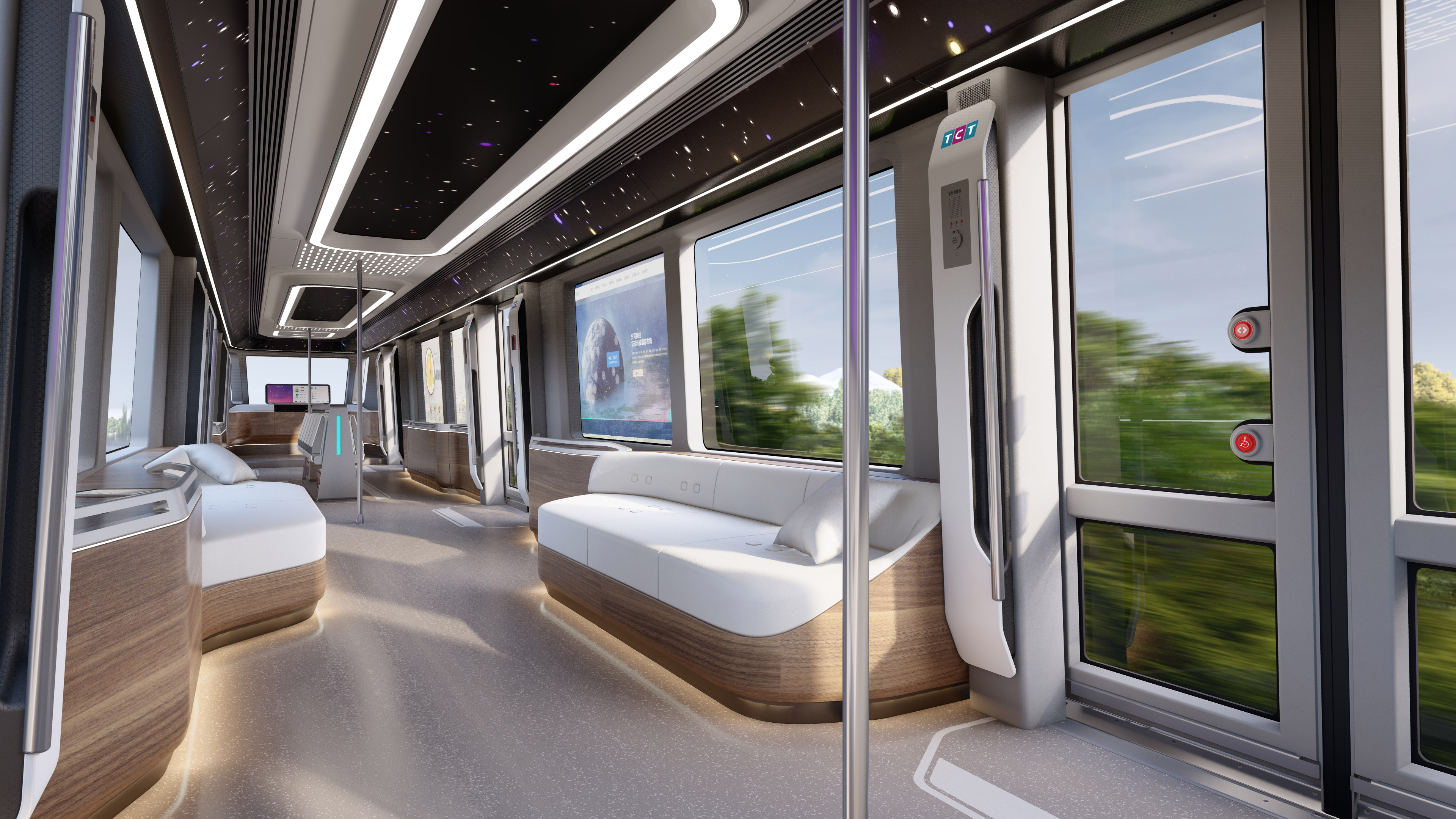 The intelligent train AutoTrain is equipped with an integrated platform that can simultaneously carry the control and communication functions of different safety level business systems such as train network, signal, traction, braking, air conditioning, passenger service, etc., and connect the entire vehicle data chain. The control instructions adopt memory sharing and TSN network transmission technology to reduce communication delay, improve control accuracy, ensure safe train operation, and achieve software defined trainsBy combining the application of logic control units, the topology structure of the hard wire circuit of the train is effectively simplified, and the overall vehicle design is optimized to achieve lightweight. Miniaturization and lightweight design can reduce vehicle costs, reduce the cycle and cost of line construction. The use of fully automated driving technology has reduced operating costs and labor intensity, while also improving safety and reliability.The front face of the train adopts a honeycomb shaped design feature, breaking the inherent impression of traditional subways, with a strong sense of future and eye-catching. The highly technological and futuristic painting form will be highly favored by young people. The interior can be equipped with wireless charging, intelligent LED interactive screen, comfortable sofa, etc., perfectly combining technology and home elements, providing passengers with a more novel riding experience.The rail transit on the main line is a good supplement and solution to alleviate traffic pressure. At the same time, it forms a three-dimensional comprehensive transportation network pattern, which facilitates on-site transfer, transfer or distribution, improves transportation efficiency, reduces transportation energy consumption, and can reduce environmental pollution.
