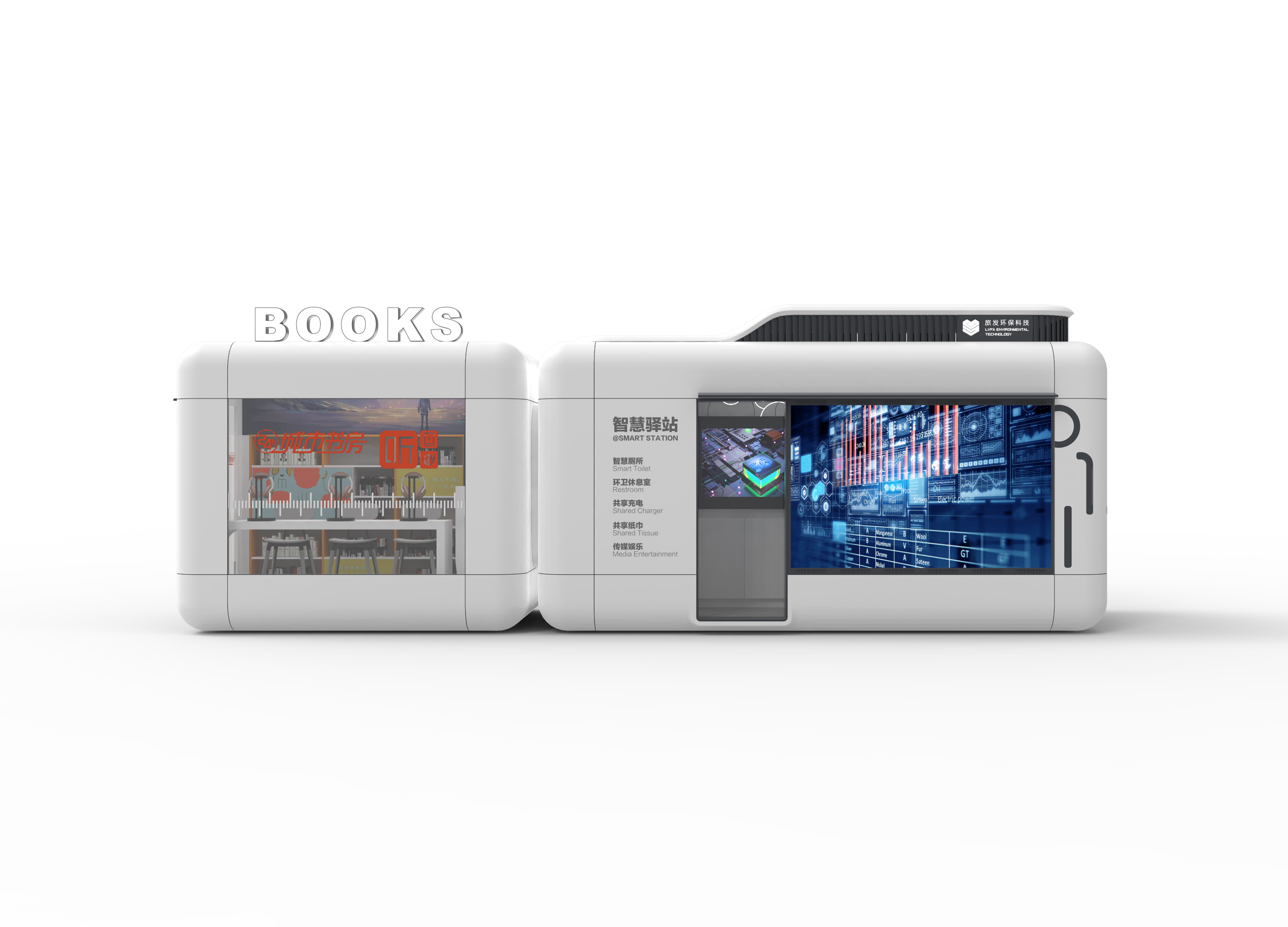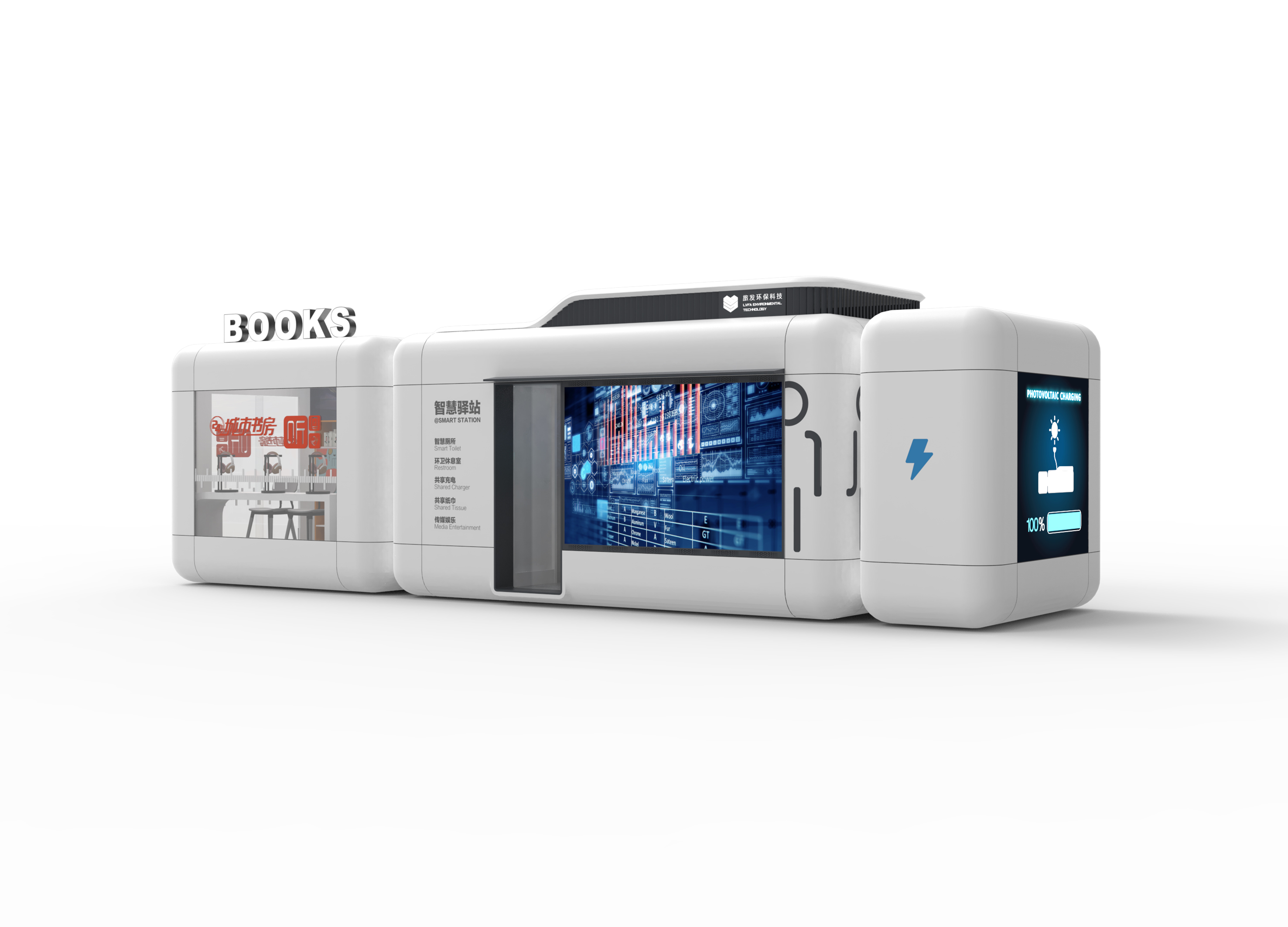 Products around the national "double carbon energy saving", "toilet revolution", "smart city construction" and other important guidelines, to create smart health service module as the main body, combined with commercial or social service function space, equipped with photovoltaic, energy storage smart city service station.The smart sanitation service module is equipped with smart toilets, smart iot monitoring system, feces integrated treatment system, shared charging bank, shared umbrella, shared tissue machine, advertising unit and consumer emergency facilities.Products are presented in a rounded shape in the city, we compare it to a "bubble", the bubble can be randomly and flexibly combined, can also be widely scattered in every corner of the city, with this image concept to express the richness of our scene and the diversity of business forms.To realize the "5-minute convenient service circle" of health and healthy life, realize 24-hour convenient health service, and accurately and comprehensively improve the environmental hygiene and experience of people's toilets.
