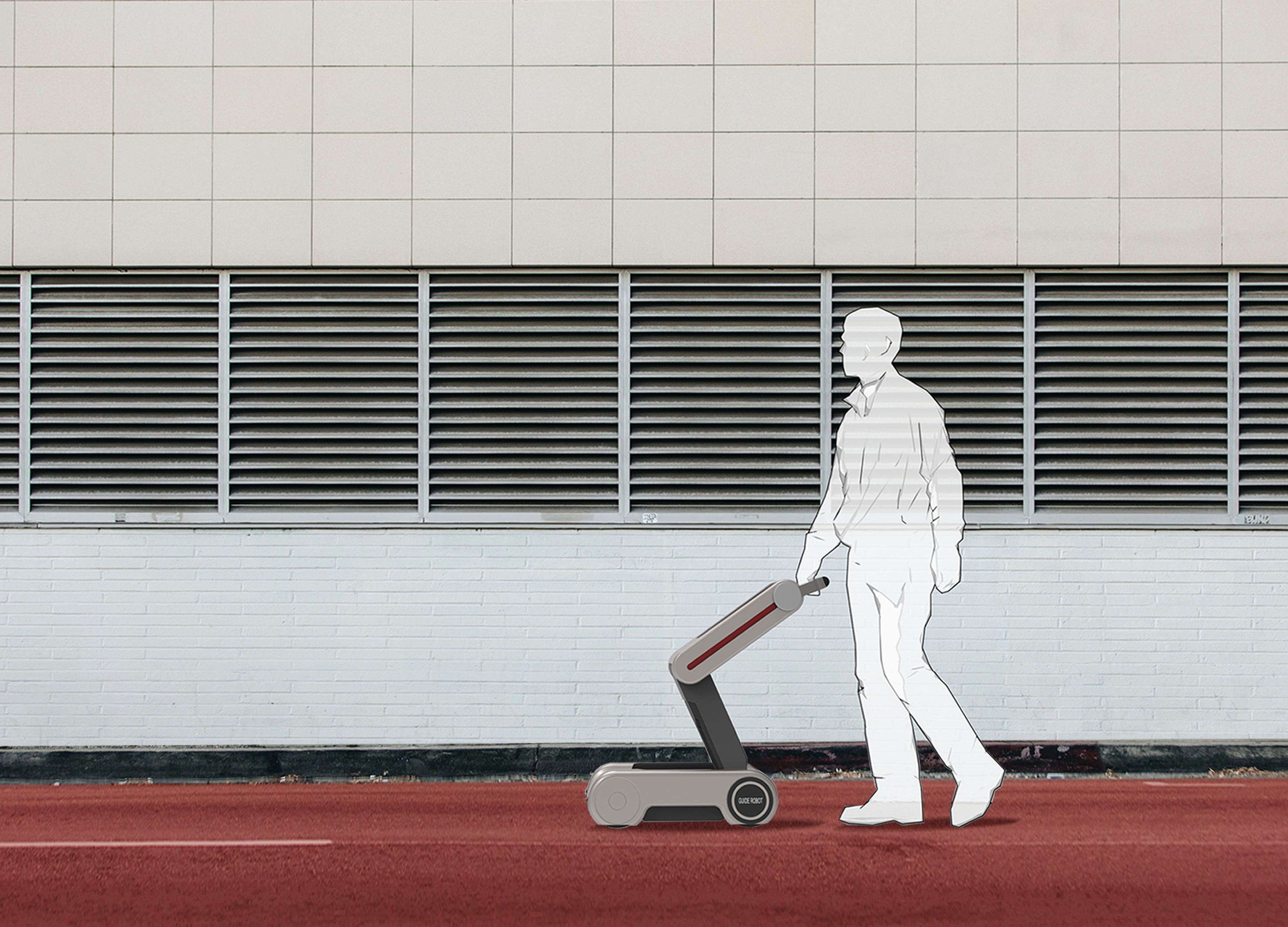 With the development of society, people are paying more and more attention to visually impaired groups, but the training cost of guide dogs that can help blind people live is still very high. The "CUIDE" guide robot is to help visually impaired people act more autonomously and safely in daily life. To enable more and more blind people to travel freely.Designed to provide reliable navigation and guide services for the visually impaired, the robot uses advanced sensing technologies, including lidar, cameras and infrared sensors, to sense its surroundings in real time, and to identify and plan its environment through deep learning algorithms. The robot is equipped with voice interaction to naturally communicate with the user, providing navigational guidance, warnings and real-time feedback, in addition to obstacle avoidance and person avoidance to ensure the safety and comfort of the user.GUIDE - guide robot pays attention to the simplicity and harmony of the appearance, smooth lines, soft color matching, in line with modern aesthetic.The robot is not only a technological product, but also a manifestation of society's care for visually impaired groups. It conveys the values of equality, respect and care and helps to promote social harmony and progress of civilization.The robot's advanced sensing technology, including lidar, cameras and infrared sensors, ensures it can accurately identify its surroundings and avoid collisions with obstacles or pedestrians. At the same time, intelligent obstacle avoidance and person avoidance functions further improve the safety of users. With a natural voice interaction system, users can easily communicate with it and get the required navigation and information feedback.