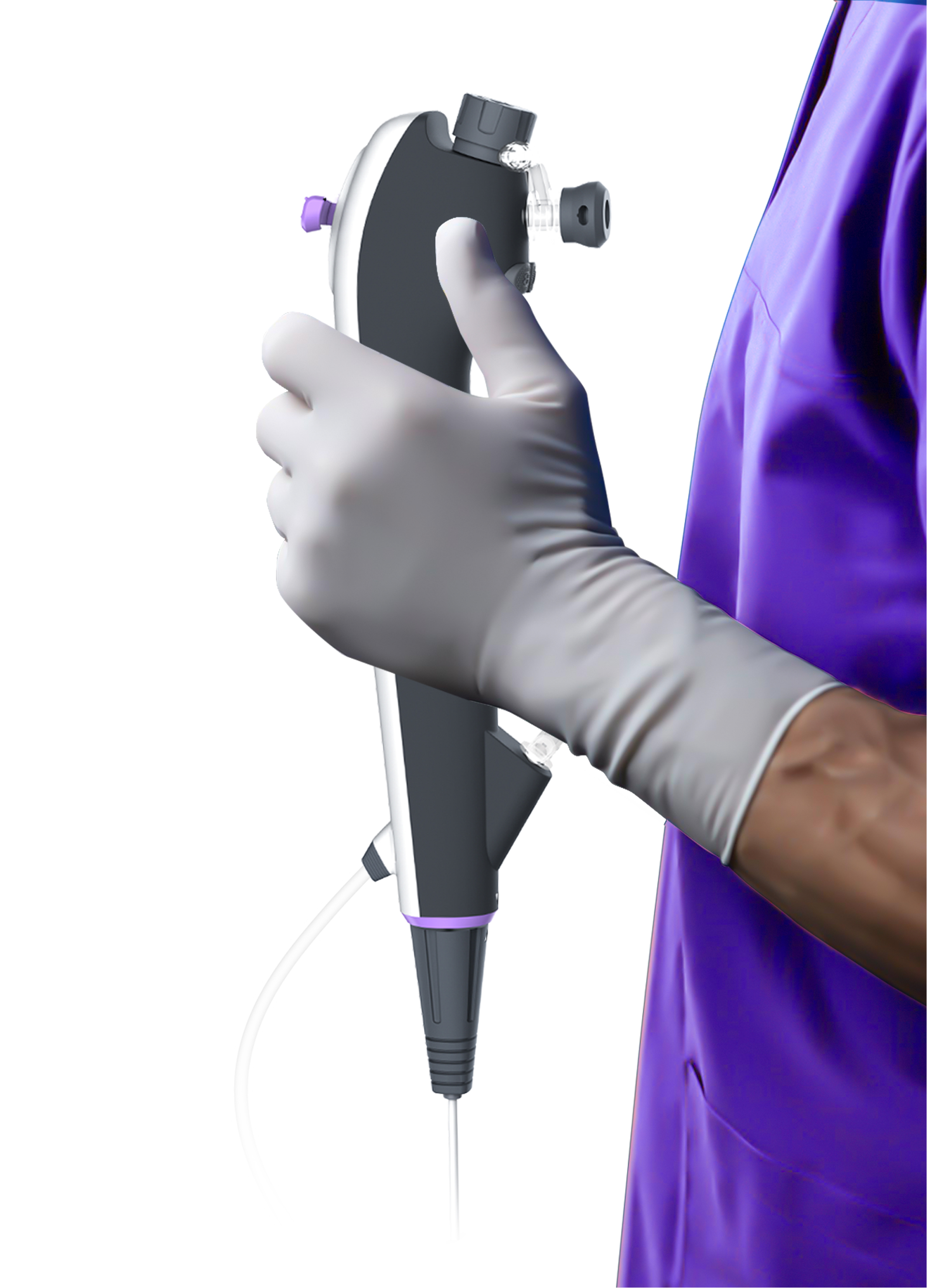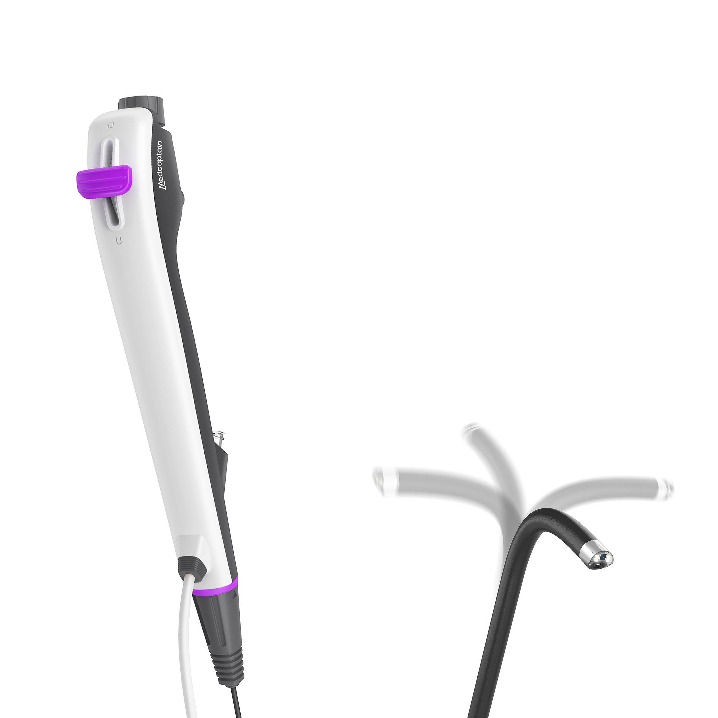 Modular design—— The end of the laser guide wire and the suction port of the device are configured through modules to meet the different needs of surgical, respiratory, and urological procedures. This lowers material consumption in compliance with the design principle of sustainability.Intuitive GUI——The handle of the device has a high degree of fit with the palm, ensuring flexible and efficient operation while effectively reducing the fatigue caused by long-time holding.Wide application——Conventional electronic endoscopes are limited to use within hospitals and fail to meet the needs of out-of-hospital surgeries in case of disasters and accidents. The device comes with two types of clients, and the mobile pad client can meet the needs of out-of-hospital surgeries.